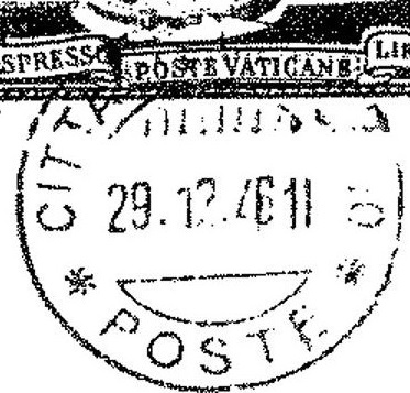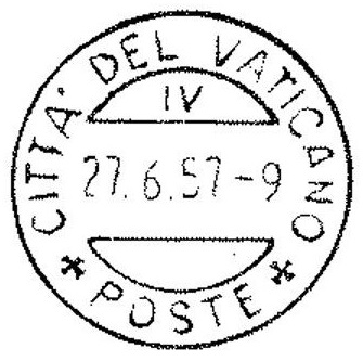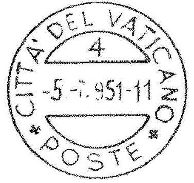 I-23![]() ![]() | Arabic 4 | CITTA DEL VATICANO | Maltese Cross | POSTE | 12/24/1949 to 12/7/1954 Black ink only | VN Ref Examples | |||