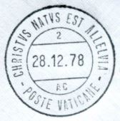 I-192![]() ![]() | 2 | AC | CHRISTVS NATVS EST ALLEVIA (CHRIST is born Hallejujah) - 1984 | dash | POSTE VATICANE | Christmas 1984 All black | VN Ref Examples | ||