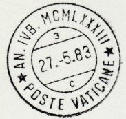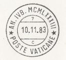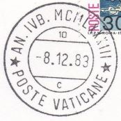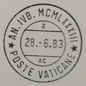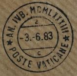 I-179![]() ![]() | 2 | F | AN. IVB. MCMLXXXIII (Jubilee Year 1983) | star | POSTE VATICANE | 03/25/1983 to 3/28/1984 All black | VN Ref Examples | ||