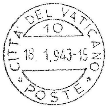 I-29a![]() ![]() | Arabic 10 | CITTA DEL VATICANO | Maltese Cross | POSTE | smaller maltese cross | 1/18/1943 to 4/6/1962 | VN Ref Examples | ||