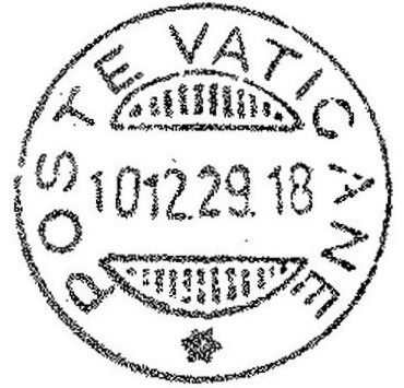 I-12b![]() ![]() | CITTA del VATICANO | Maltese Cross | POSTE | hour missing after year | 1/15/1931 to 10/1/1931 | VN Ref Examples | |||
