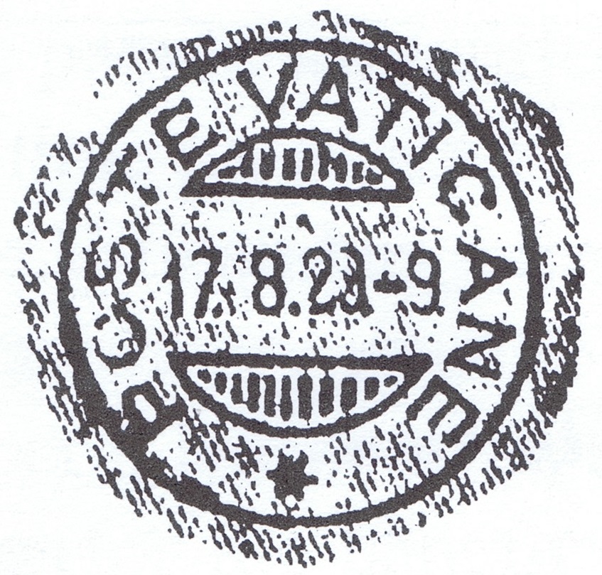 I-9b![]() ![]() | 9 lines and 2 corners | 7 lines and 2 corners | CITTA del VATICANO | star | POSTE | Black ink only | VN Ref Examples | ||