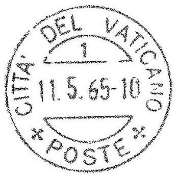 I-38a![]() ![]() | Arabic 1 | CITTA DEL VATICANO | Maltese Cross | POSTE | three breaks in upper moon and break in upper right outer circle | 3/16/1965 to 4/6/1962 | VN Ref Examples | ||