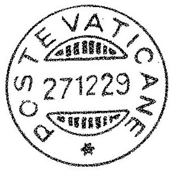 I-206![]() ![]() | 5 | C | ANNVS MARIALS (Marian year 1987-1988) | star | POSTE VATICANE | 06/07/1987 to 08/15/1988 All black | VN Ref Examples | ||