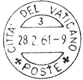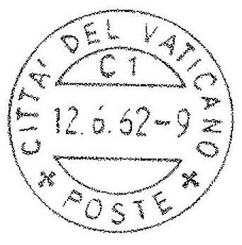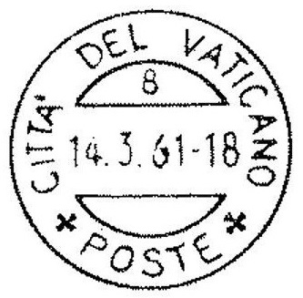 I-50a![]() ![]() | Arabic 8 | CITTA DEL VATICANO | Maltese Cross | POSTE | 8 larger also | 6/13/1961 to 6/12/1962 Black ink only | VN Ref Examples | ||