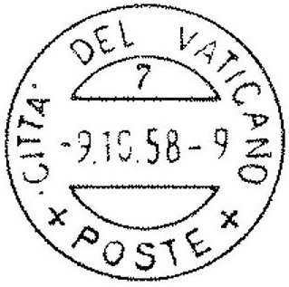 I-26![]() ![]() | Arabic 7 | CITTA DEL VATICANO | Maltese Cross | POSTE | 12/21/1949 to 4/7/1960 Black ink only | VN Ref Examples | |||