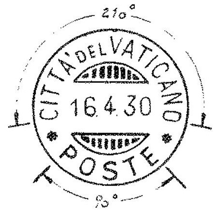 I-6![]() ![]() | 6 vertical lines, 2 corners | 6 vertical lines, 2 corners | CITTA del VATICANO | star | POSTE | 3/25/1930 to 4/16/1930 Black ink. | VN Ref Examples | ||