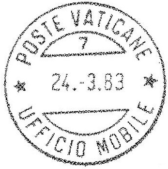 I-233![]() ![]() | 4 | UFF. MOBILE | ANNVS MARIALS (Marian year 1987-1988) | star | POSTE VATICANE | 06/07/1987 to 08/15/1988 All black | VN Ref Examples | ||
