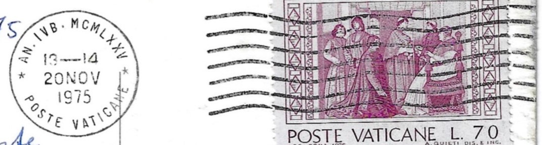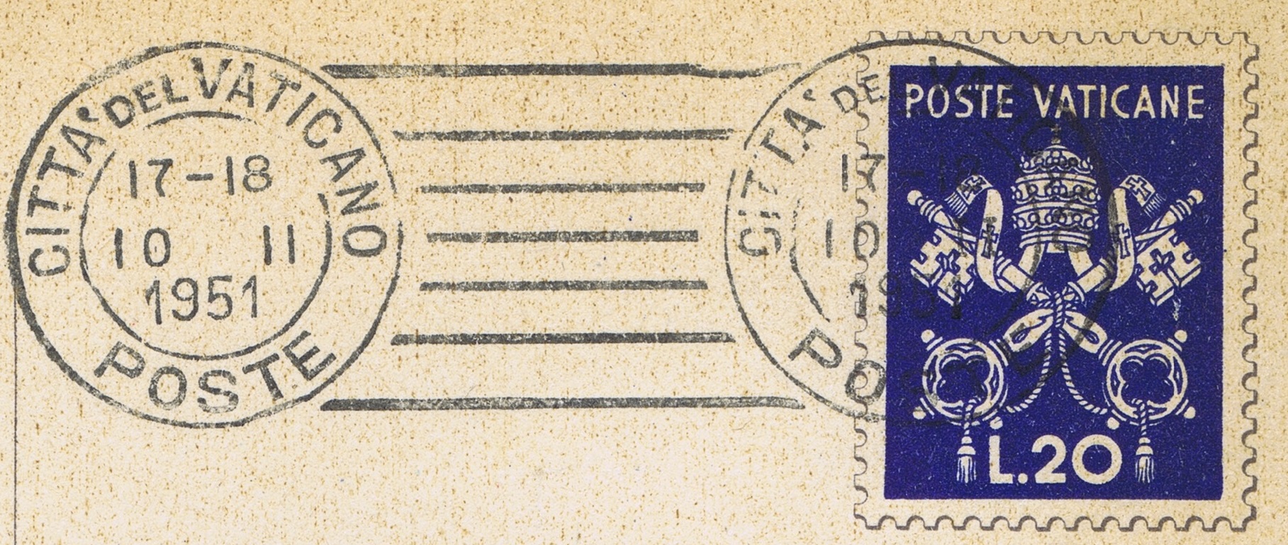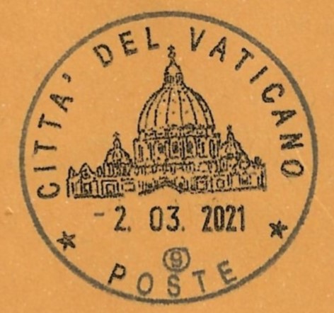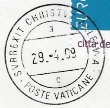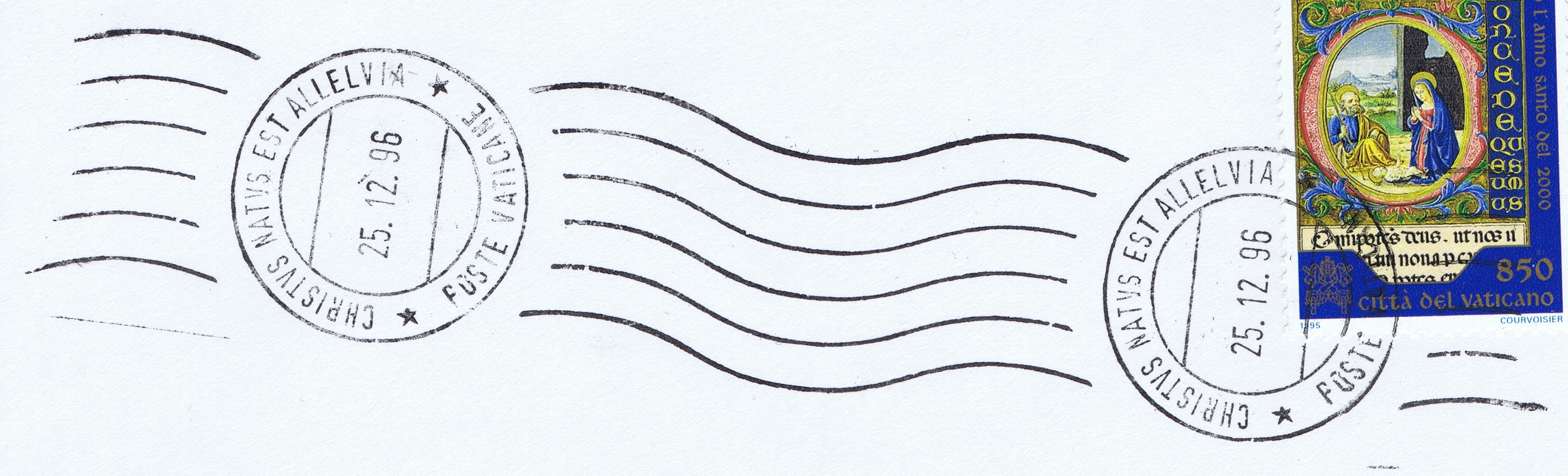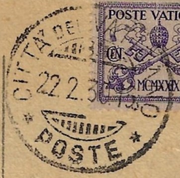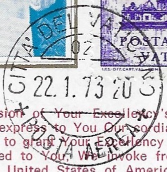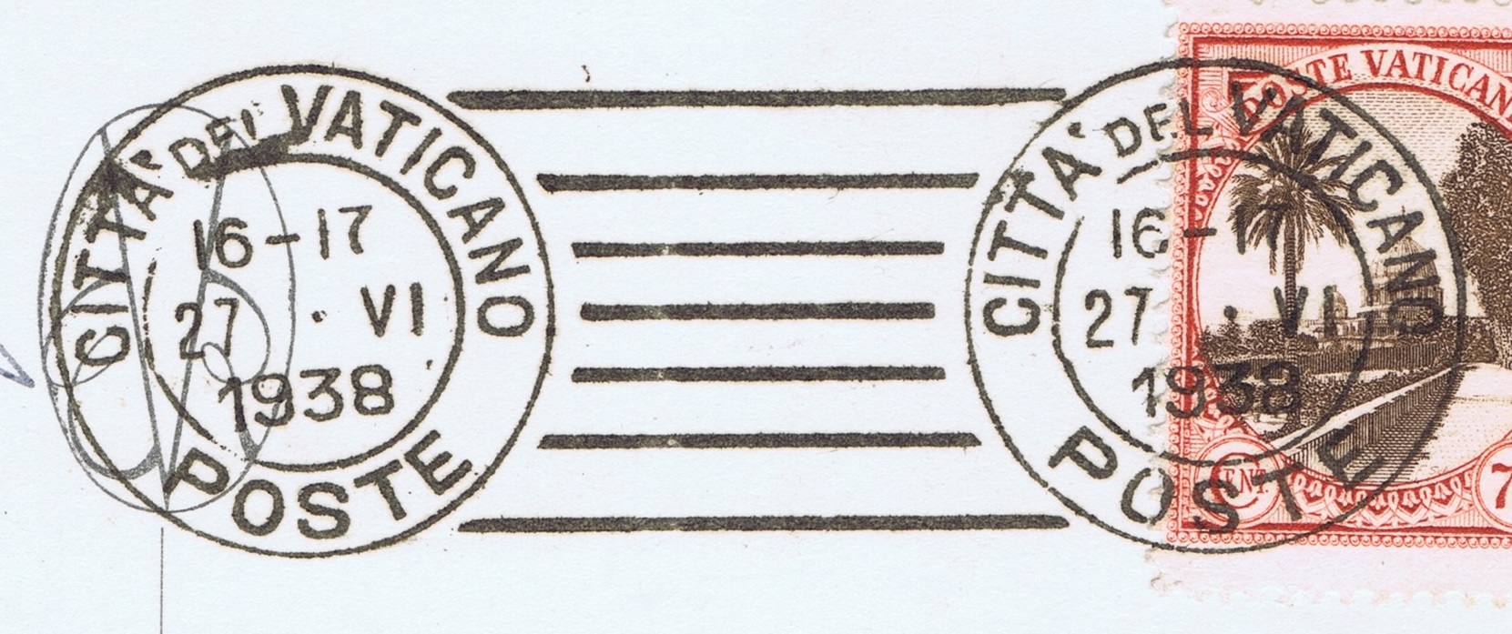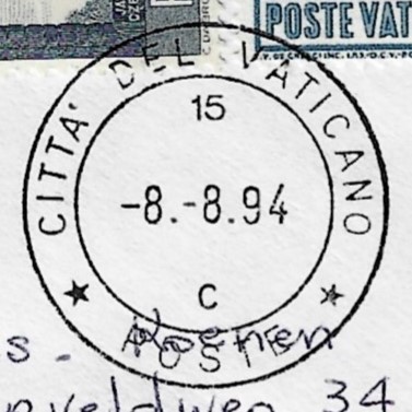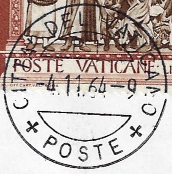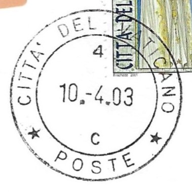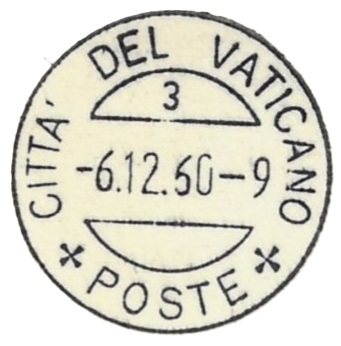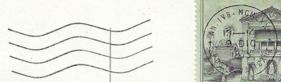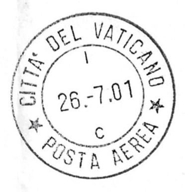 Entire postmark 73mm long; circle 23mm; 7 wavey lines 43mm long; 7mm between circle and lines; Italian Postal Code (00120) as part of top