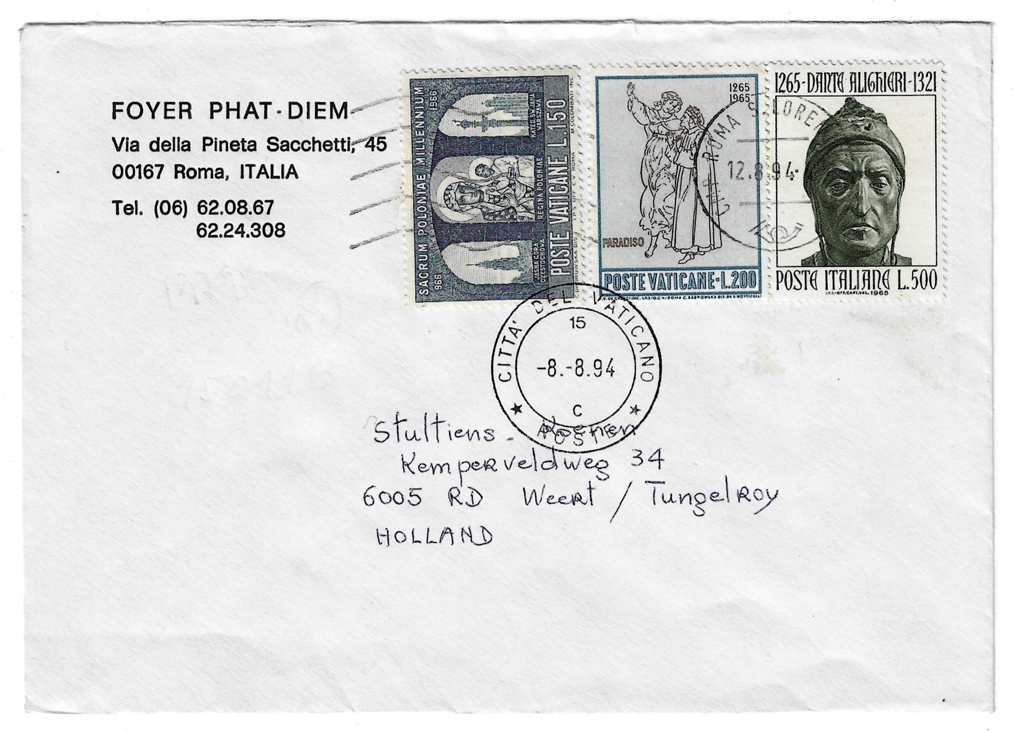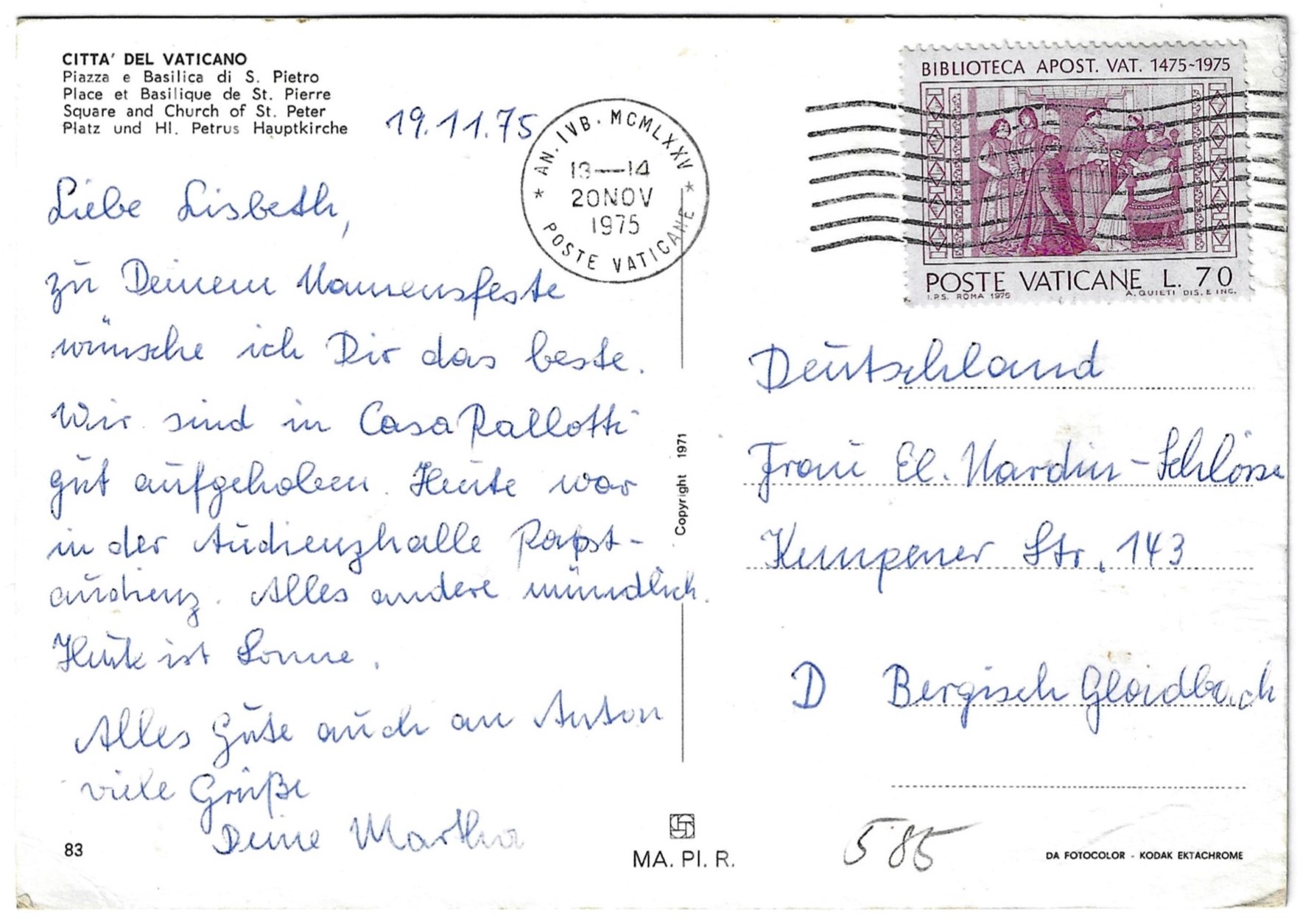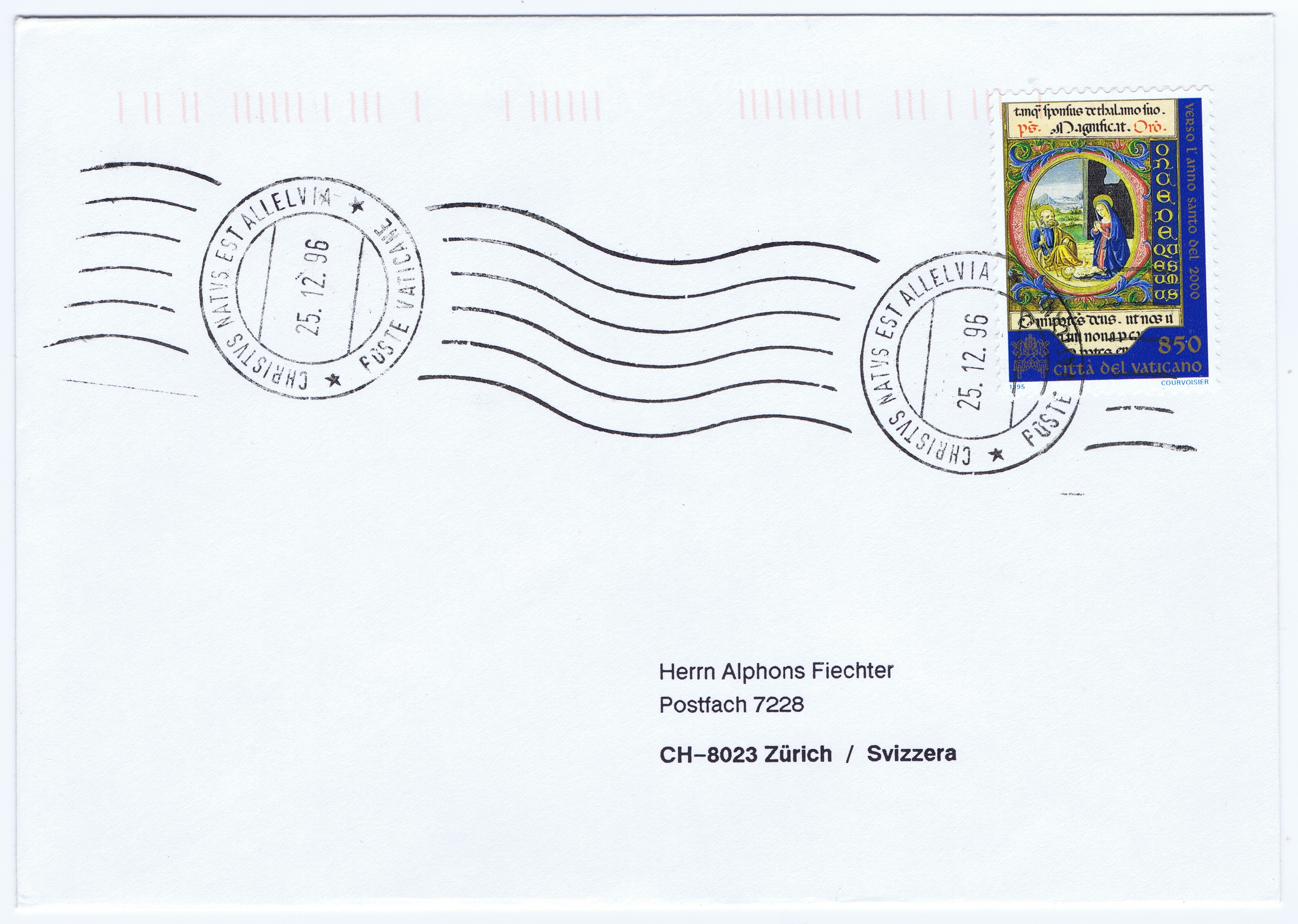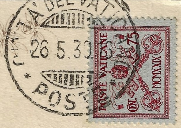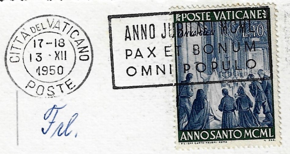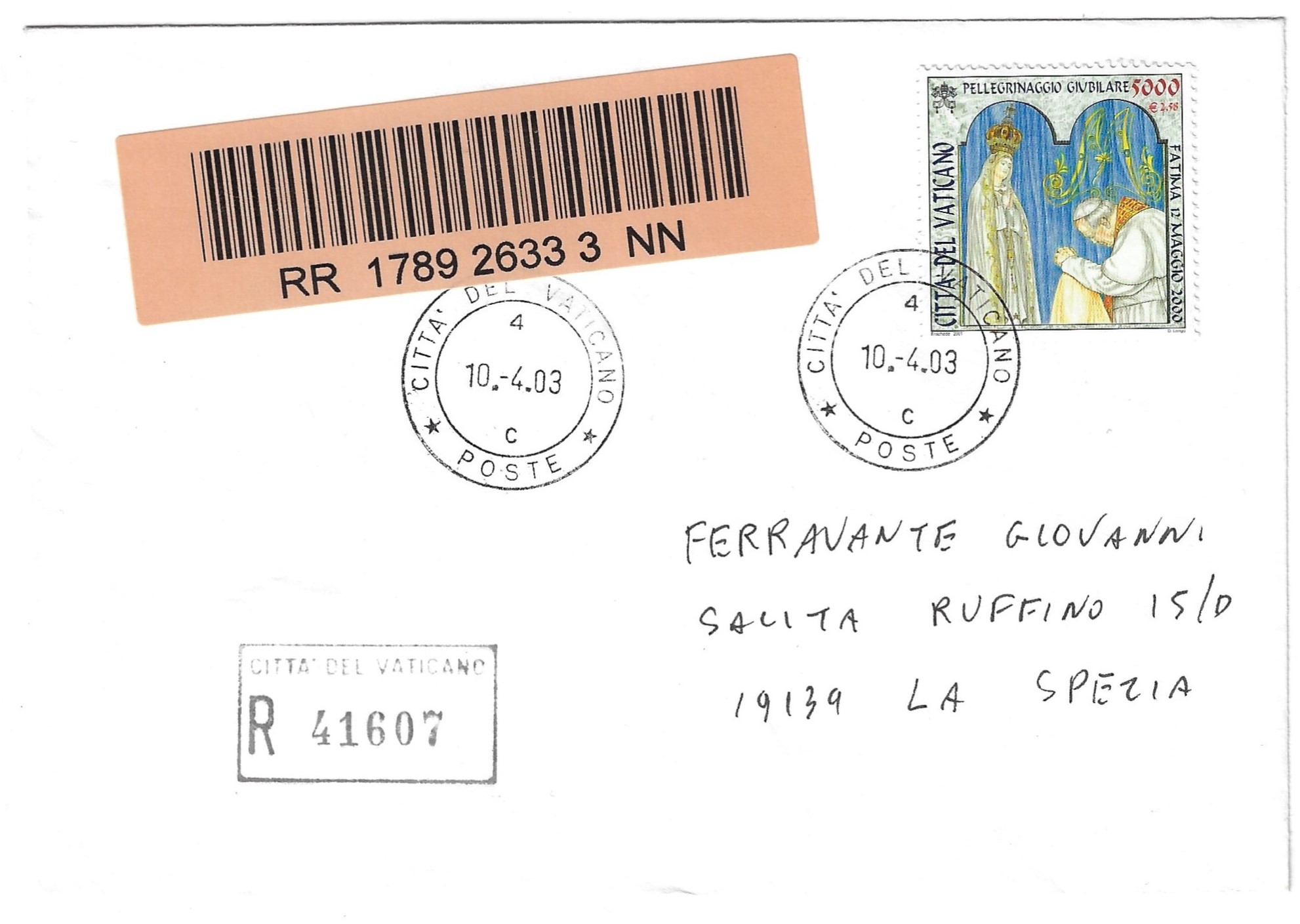 Entire postmark 73mm long; circle 23mm; 7 wavey lines 43mm long; 7mm between circle and lines; Italian Postal Code (00120) as part of top