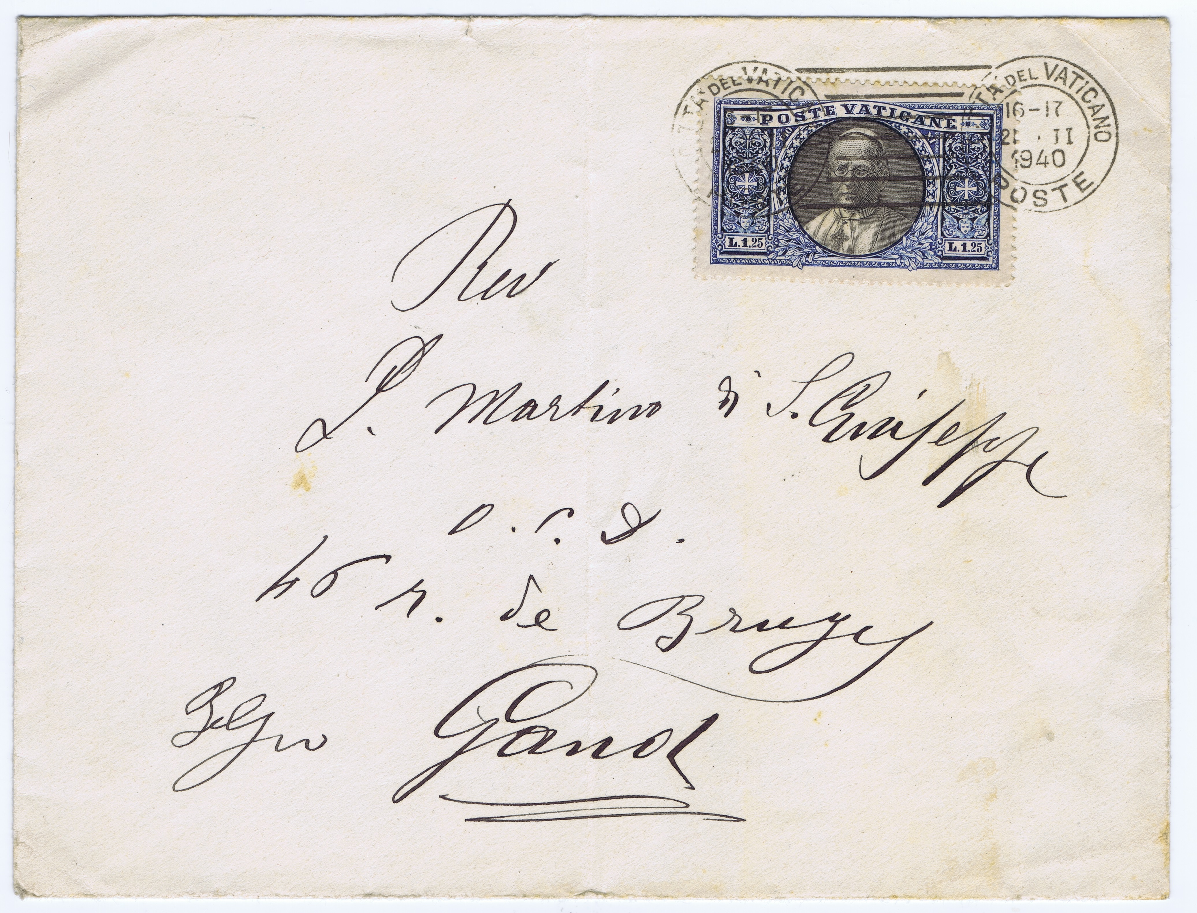 This cover is addressed to a clergyman with an Italian-sounding name in Ghent (called Gand in French), Belgium. I read it as Rev. P. Martino di San Giuseppe, 46 Rue de Bruges, Gand, Belgium. In those days French was still the working language of the government everywhere in Belgium, but today the street and town names in Ghent would be written in Dutch (Flemish).