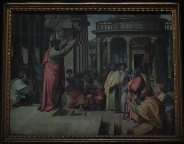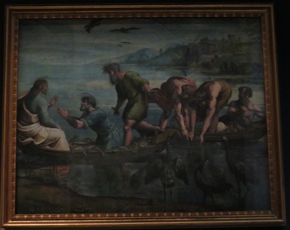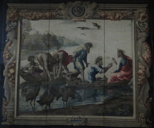 ![]() Raphael Sanzio Scott 87 (1944) The Original Article As Published in Vatican Notes While Raphael was still painting the walls of the Stanze which bear his name in 1513, Pope Leo X requested that he draw cartoons for ten tapestries for the Sistine Chapel. Two of his best pupils, Giovanni Francesco Penni and Giulio Romano, were chosen to continue the paintings, while Raphael worked on the cartoons. They were finished by Christmas, 1516, consisting of ten lightly tinted cartoons of the chief events in the lives of St. Peter and St. Paul. Leo X paid 100 ducats for each of these cartoons which were the exact size and shape which were to be reproduced on the looms. The only place where they could be woven was Flanders. Arras was the former center for tapestries, but since its capture by Louis XI in 1477, it had lost its leadership in this field. Brussels had since become the center of tapestry weaving and thence the cartoons were sent immediately. The work was done with dispatch, since the first design, the Giving of the Keys to Peter, was completed by July, 1517. The tapestries were executed in wool, silk and gold thread under the supervision of Raphael's pupil, Bernhard van Orley. Peter Van Aelst was the supervising weaver and was paid 1500 ducats for each tapestry and awarded the title "Court Purveyor to His Holiness". By July 1519 three of the tapestries had reached Rome and four more came in the fall. They were hung in the Sistine Chapel below the frescoes on St. Stephen's Day. After the death of Leo X they were pawned because of financial distress, then redeemed and restored to the Sistine Chapel. During the Sack of Rome, 1527, mercenary soldiers tried to extract the gold thread by melting it. Pieces of the looted tapestries were purchased back in 1530. Seven tapestries were back by 1544 and two pieces were restored under Julius III which had gone via Venice to Constantinople. All were stolen again during the French Revolution. The tapestries and papal furniture were auctioned and bought by French dealers, then traveled to Genoa and then to the Louvre in Paris. Pius VII secured their return with more of the Napoleonic loot stolen from the papacy. In 1814 they were placed in the Chamber of Pius VI. Gregory XI placed them in the present Gallery of Tapestries. Because of this abuse over the centuries they are not the same beautiful works of art that came from the looms of Brussels, having coarse restorations and patches, and have faded with the years. One has the bottom missing, while others have the wrong borders attached. Seven of the original cartoons were discovered by Rubens in 1630 and belong now to the English Crown, at the South Kensington Museum. All ten cartoons were left in Brussels, after the tapestries had been woven and delivered. Some biographers assume that only the Miraculous Draught of Fishes came entirely from the hands of Raphael; of the seven cartoons in London, some attribute only the heads to Raphael and the rest to his students. Other critics disagree and attribute most of the work to the Master. And so it goes. In the Sistine Chapel the tapestries were hung in a definite order. On the Gospel side were: The Call of Peter under the Destruction of Core; the Healing of the Lame Man under the Giving of the Law at Sinai; the Death of Armenia& under the Passage of the Red Sea; the Stoning of Stephen under the Infancy of Moses; the Miraculous Draught of Fishes under the Circumcision of Moses. On the Epistle side were: The Conversion of Paul under the Baptism of Christ; the Blinding of Elymas under the Purification of the Lepers; the Sacrifice at Lystra under the Calling of the Apostles; the Deliverance of Paul from Prison under the Sermon on the Mount; the Preaching of Paul at Athens under the Giving of the Keys. The tapestries continue the story of the apostles told in the paintings. The only deviation to this order of sequence was that the Miraculous Draught of Fishes was sometimes placed between the Papal throne and the altar wall, so that the wall behind the Papal throne would have behind it subjects illustrative of the papal primacy. The central panels of the tapestries had broad ornamental borders all of which are not preserved. The vertical borders, corresponding to the chapel pillars, had grotesque patterns in color on white or gold. Allegorical figures were grouped between vases and branches. The horizontal borders contain small pictures referring to the life of Paul or Peter. The cartoons preserved in London show in the Miraculous Draught of Fishes the scene referred to in Luke V, with Christ and Peter in one boat and James and John in another, taking in the remainder of the catch. Christ wears a blue mantle over a white garment, with Peter in blue. Peter has just exclaimed "Depart from me, for I am a sinful man," while Christ says: "Fear not. From henceforth you shall catch men." Behind Peter is a figure in green, probably his brother, Andrew. The seven cartoons preserved were: of Peter: The Miraculous Draught of Fishes Call of Peter Healing of Lame Man Death of Annanias of Paul: Blinding of the Sourcerer Elymas Sacrifice of Lystra Preaching at Athens. The cartoons of Raphael are claimed to be the modern counterpart of the classic sculptures of the Parthenon, especially the Miraculous Draught of Fishes and St. Paul at Athens. Their influence is claimed to be greater than the Stanze of Raphael. They are a continuation of the story of salvation, begun in the frescoes on the walls, continued on the ceiling by Michaelangelo and now carried further in the same Sistine Chapel by these tapestries. Reference Pastor. History of the Popes. Vol. VIII, pp 294-317. (From Vatican Notes Volume XII, Number 6, May - June 1964, Page 4) Now For A Bit Of An Update In 2023 I was able to visit the South Kensington Museum, better known as the Victoria And Albert Museum, in London England. High on my priority "must see" list was Raphael's cartoons. I was not disappointed, the desig