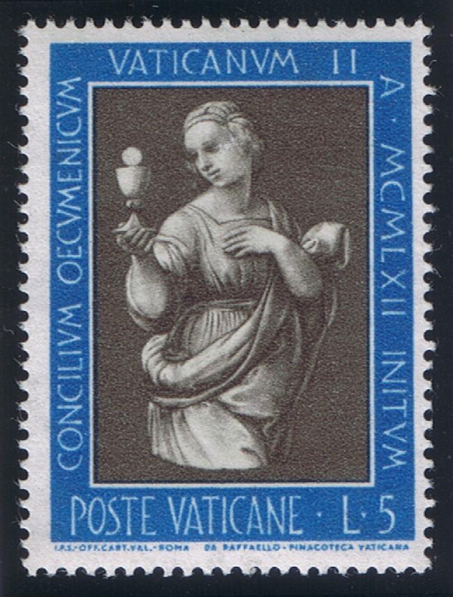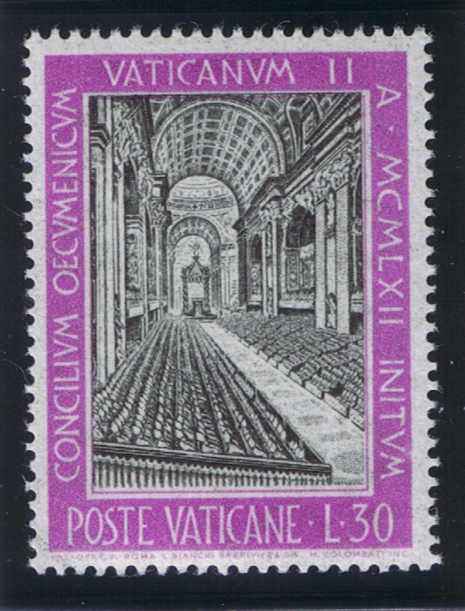 The stamps illustrated above were issued on October 30, 1962, to mark the opening of the Second Vatican Ecumenical Council, now remembered simply as "Vatican II". To say the impacts of Vatican II on the Catholic Church were huge would be an understatement. Vatican II was the 21st ecumenical council of the Roman Catholic Church. Preparations for the council took three years, starting in 1959 and culminating in the opening of the Council on October 11, 1962. Pope John XXIII oversaw the preparation for Vatican II and its first session. Following his death in June of 1963, Pope Paul VI managed the last three sessions. Vatican II closed following its fourth session on December 8, 1965. Pope John XXIII proposed the idea of the Council in 1959, shortly after his election as Pope, because he felt the Church was in need of “updating”. He felt a revival or modernization of Church practices was needed in order to improve the connection of the Church to the people living in the 20th-century world, one which had become increasingly secularized. He believed Church practices needed to be improved, and its teachings needed to be made more understandable and relevant to its followers. The participants at Vatican II could be broken into two camps: reform-minded clerics and theologians agreeing with a need to institute change, and conservative members of the clergy who saw little need for change and reform. In the end, "updating" won out over "resistance to change", resulting in Vatican II producing sixteen magisterial documents (broken down into four "Constitutions", nine "Decrees" and three "Declarations") which proposed significant developments in doctrine and practice, including: * Liturgical reform * A renewed theology of the Church, of revelation and of the laity * A new approach to relations between the Church and the world as a whole, including ecumenism, relations with non-Christian religions, and religious freedom. This article barely scratches the surface of the impacts of Vatican II on the Church. Suffice it to say the results of Vatican II are still being debated to this day, and the ramifications of the reforms of Vatican II are still being felt by the Church as a whole. References: Wikipedia.com, "Second Vatican Council" Vatican Philatelic Society website (www.vaticanstamps.org), "Stamp Database Search" | ||||||||||||||||||||