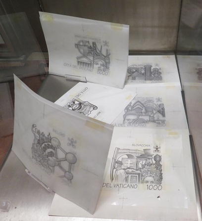 ![]() The Vatican Philatelic Museum has several display cases of stamp developmental sketches.