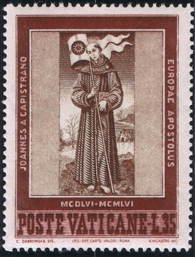 John of Capistrano (1386-1456) was born in Capistrano in the Abruzzo region of central/southern Italy, now a small town of under 900 residents. A 1776 mission in Orange County, CA is named after the Italian saint, a city known for the return of migrating Cliff Swallows around 19 March, four days prior to his memorial. Capistrano studied law at Perugia, married, and became governor of Perugia in 1412. He later separated from his wife and became a Franciscan at age 30. John humiliated himself by riding a donkey backwards through the town with a list of sins identified on his hat prior to admission as a Franciscan. He adopted an austere lifestyle, walking barefoot, sleeping only a few hours daily, also wearing a hair-shirt. He became a priest in 1420. His preaching attracted large crowds and he promoted a return to the ideals and Rule of St. Francis by Observant Franciscan monks and nuns. During the Hussite rebellion in Bohemia, John was sent as an inquisitor to Vienna where he worked with great zeal against the Hussites, the severity of which he was later criticized. Pope Pius II (1458-1464) encouraged John to preach a crusade against the Turks after the Fall of Constantinople (1453). When the Turks attacked Belgrade, the preaching of Capistrano and the leadership of Hungarian general Janos Hunyady led to a victory. However, the unburied corpses following the battle led to the spread of disease claiming both Hunyady and Capistrano in 1456. References: • David Farmer, Oxford Dictionary of Saints, (Oxford: 2004) • Dawn Marie Beutner, Saints Article Link: • Anonymous, “St John of Capistrano” Vatican Notes, Vol. 5, No. 2, pp. 1-2 (1956) | |||||