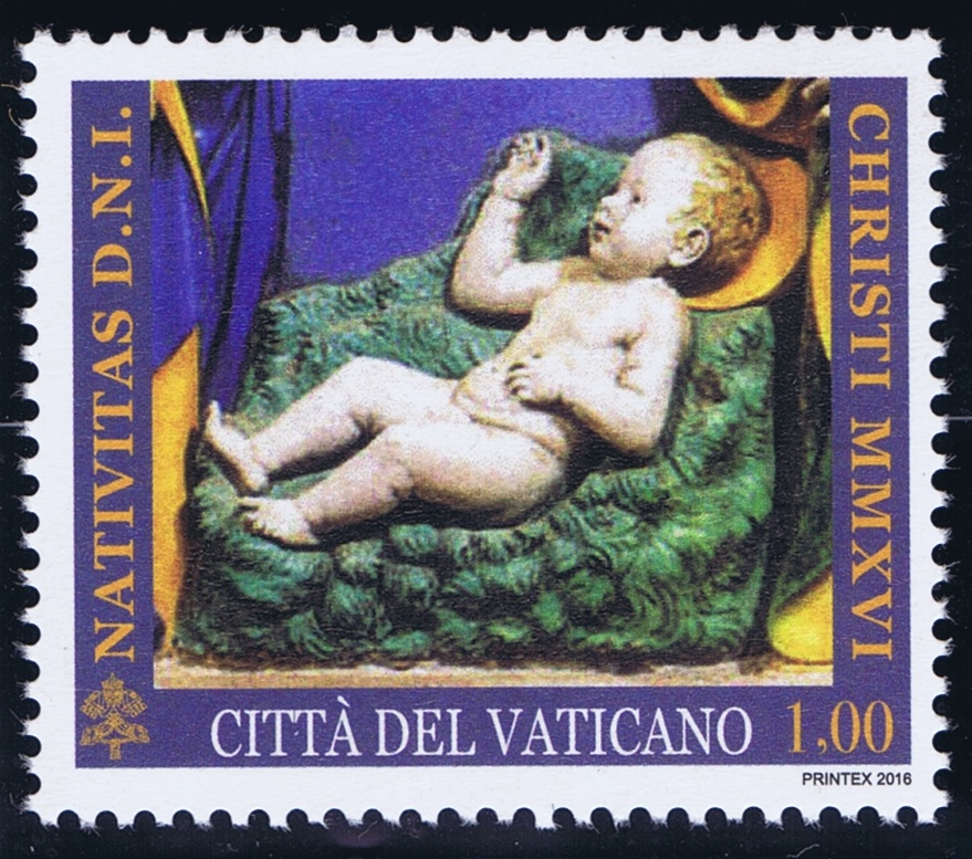 Descriptive Name: Christmas 2016 - Baby Jesus; a Multi Colored Enameled Terracotta Work by Andrea della Robbia - (Booklet 25 & Booklet Pane)
