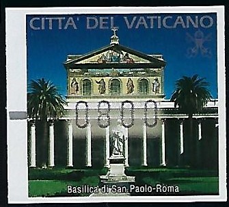 Scott Number: V4 Date Issued: 2000-03-15 Descriptive Name: Vending Machine - St Paul Outside The Walls Face value: 0800 Color: Multi Perforation: Imperf Printer: Helio Courvoisier SA (Switzerland) Click to seeUFN Bulletin Announcement